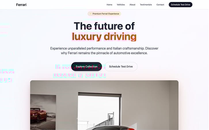 Elegant website featuring test drive scheduling, financing calculator, and high-end design.